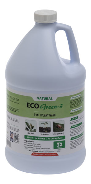 ECO Green is a professional-grade leaf cleaner designed for commercial growers, interiorscape professionals, and controlled-environment operations. It gently washes away residues and environmental debris while supporting cleaner roots and a healthier plant environment — all in one simple, spray-and-walk-away application.